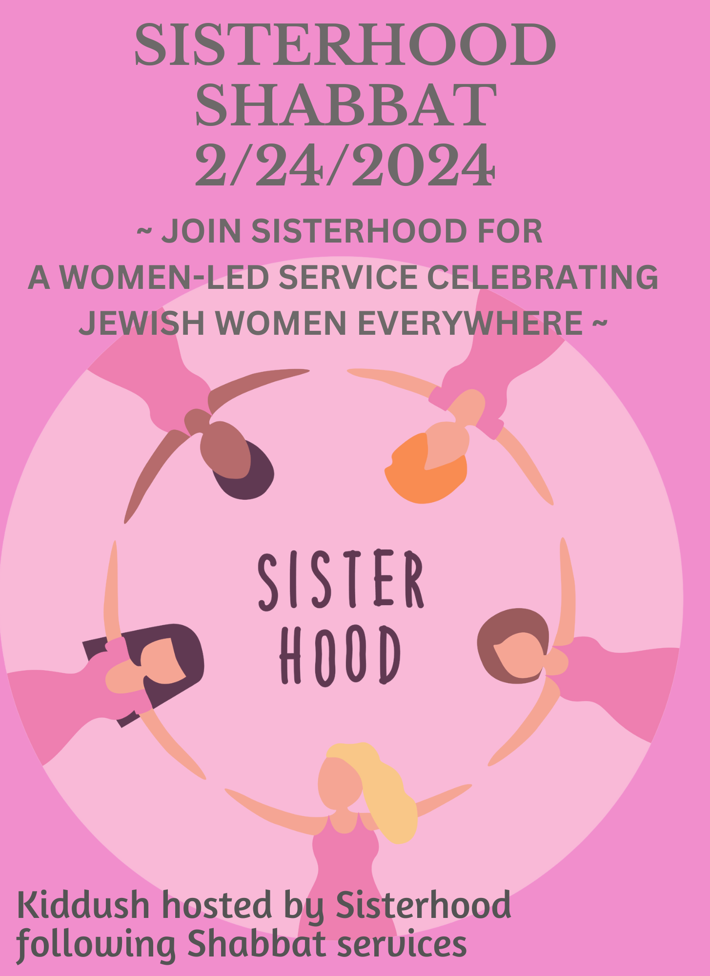 Join Sisterhood for a women-led service celebrating Jewish women everywhere on Sisterhood Shabbat , February 24.