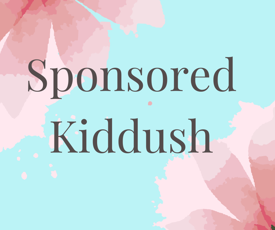 Kiddush luncheon sponsored by Rita Jacobson in honor of the yahrzeits of her mother Charlotte Berger and her mother-in-law Molly Jacobson, of blessed memory. All are welcome, please join us!