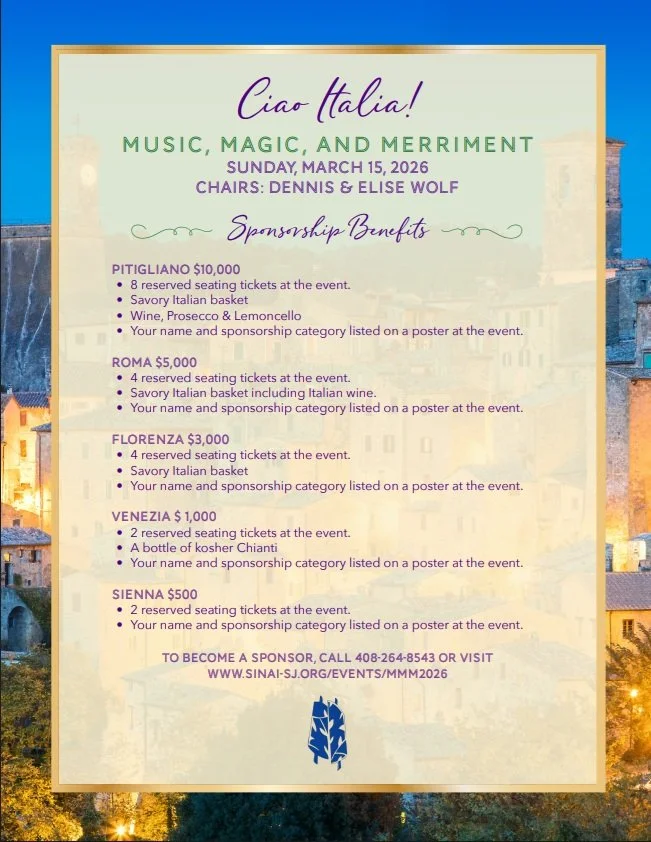 Call Joelle Pluemer at 408-264-8543 to make a pledge or visit www.sinai-sj.org/orders/mmm2026 to sponsor online.