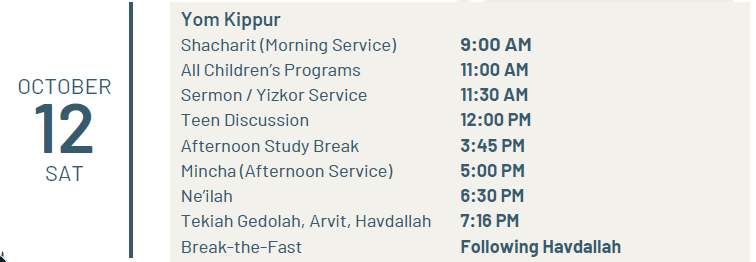 Yom Kippur- Tekiah Gedolah, Arvit, Havdallah